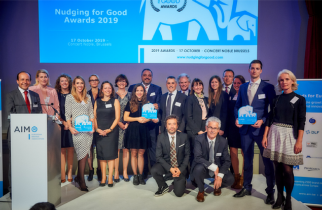 After its first Awards edition in 2017, AIM started the contest for the 2019 Awards already in November 2018; it was open to all its member companies and associations. Participants submitted an active or recent Nudging for Good initiative, which was validated in terms of behavioural impact and addressed one of the three categories Health & Well-being, Environmental Sustainability or Social Responsibility. From all of these submissions, BVA – AIM’s specialised partner agency on Nudge and behavioural insights – selected the 10 most inspiring finalist cases. In September, these 10 finalists had the opportunity to present their Nudge cases to the Awards expert Jury who then chose its three favourite initiatives.